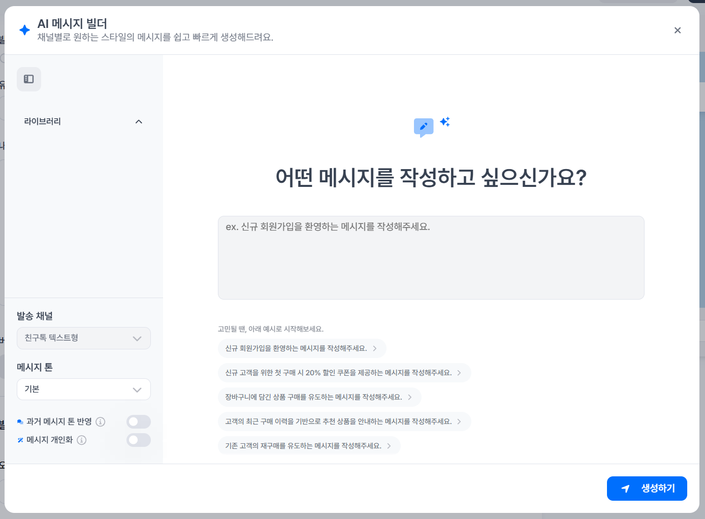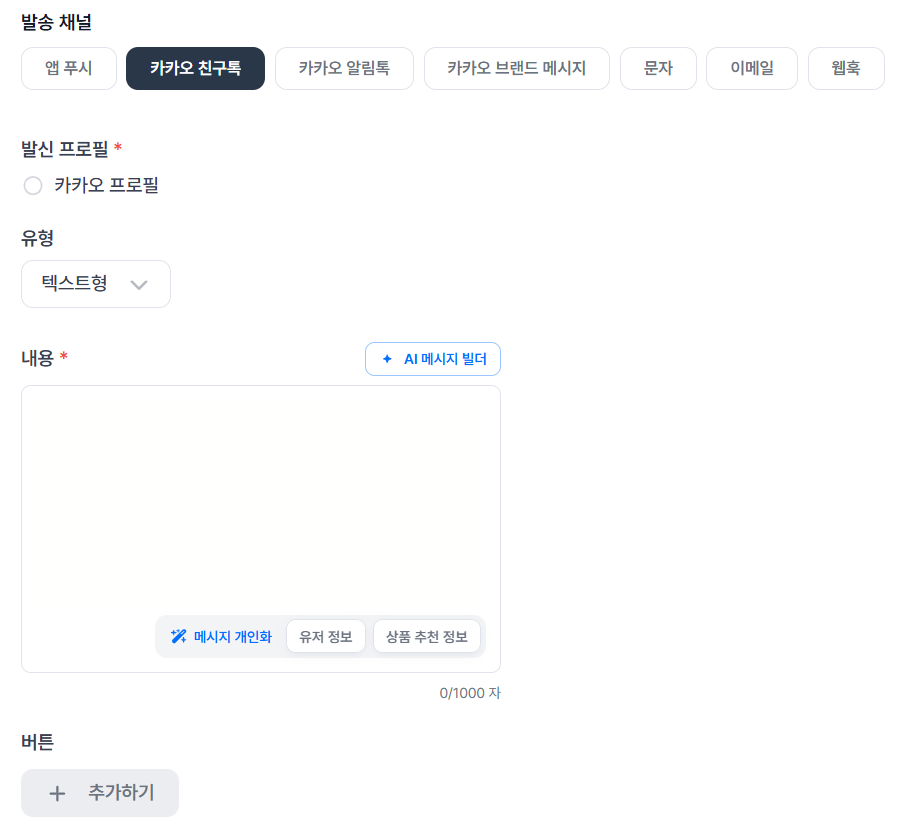 AI 메시지 빌더 화면